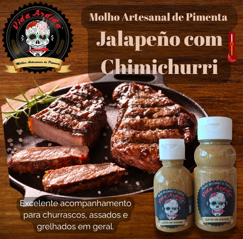 Molho artesanal de pimenta jalapeño com chimichurri, excelente acompanhamento para churrascos assados e grelhados em geral.